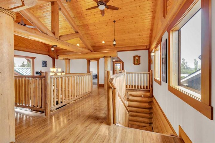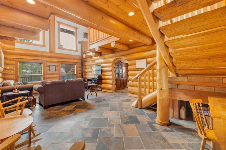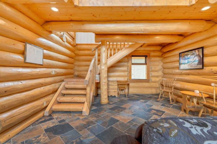 Nestled among the towering pines along the shimmering shores of Gull Lake, this stunning 2700 sqft log home embodies the perfect blend of rustic charm and modern elegance. With its handcrafted Douglas Fir logs and expansive windows, the home invites the breathtaking natural beauty of the surrounding landscape indoors. Each room is bathed in warm, natural light, highlighting the rich textures of wood and stone. The kitchen was updated in 2019 with ample space for cooking with the family or hosting a great event with family and friends. The open living area boasts a pellet stove fireplace, perfect for cozy gatherings, while a gourmet kitchen with state-of-the-art appliances caters to culinary enthusiasts. Outside, a spacious deck , providing an idyllic setting for summer barbecues and sunset views. With a detached garage to bring all the toys to enjoy all 4 seasons at the lake. Cool in the summer and warm in the winter with the boiler heat system. This log home is not just a dwelling but a serene retreat, offering a harmonious connection with nature and the ultimate escape from the hustle and bustle of everyday life. Boiler heated with infloor coil and blower heat throughout home, fenced backyard, playgrounds, beach and cycling and walking paths nearby. Move in ready fully furnished as you see inside as well as all belongings and supplies in the garage as well as all the patio furniture etc.