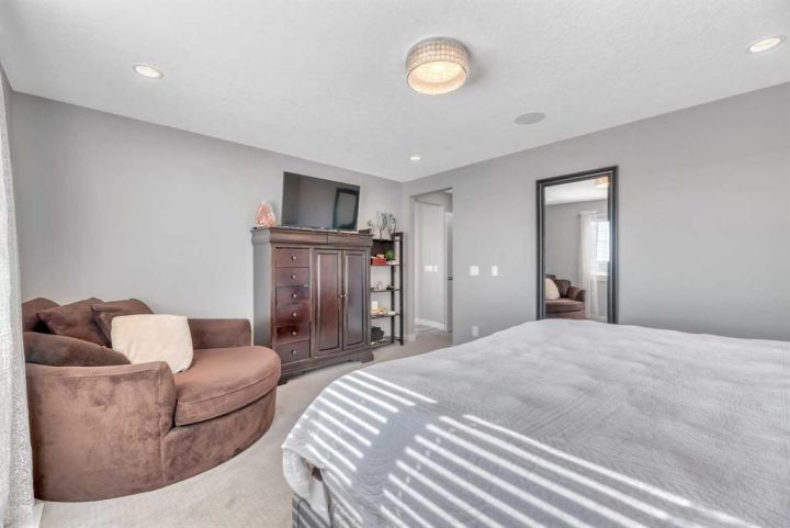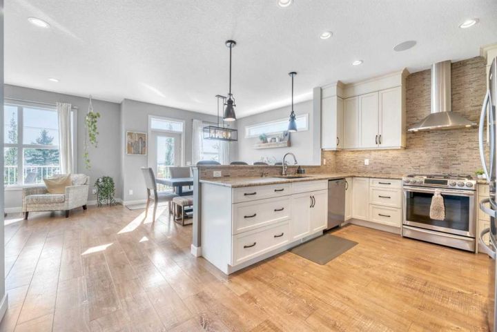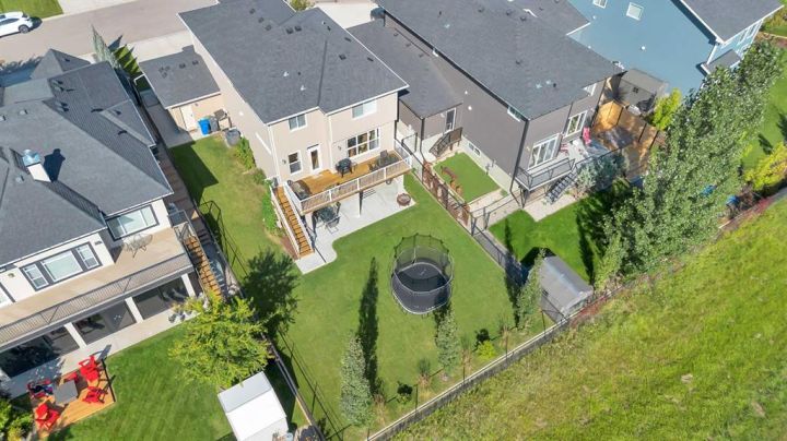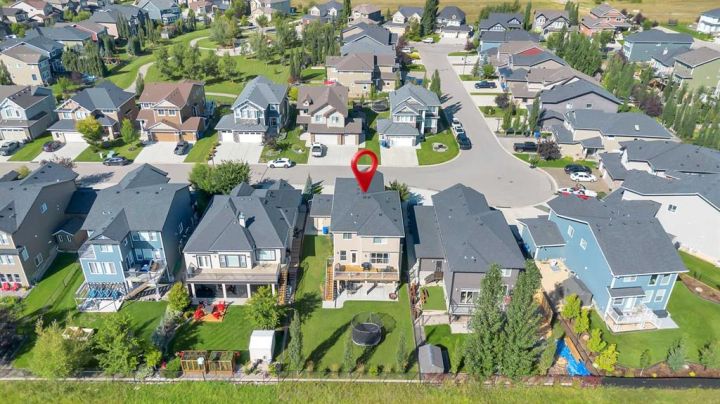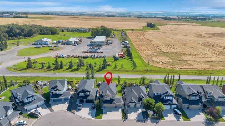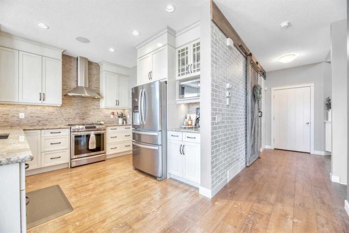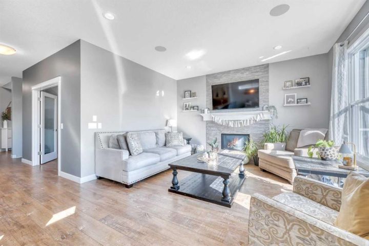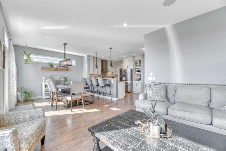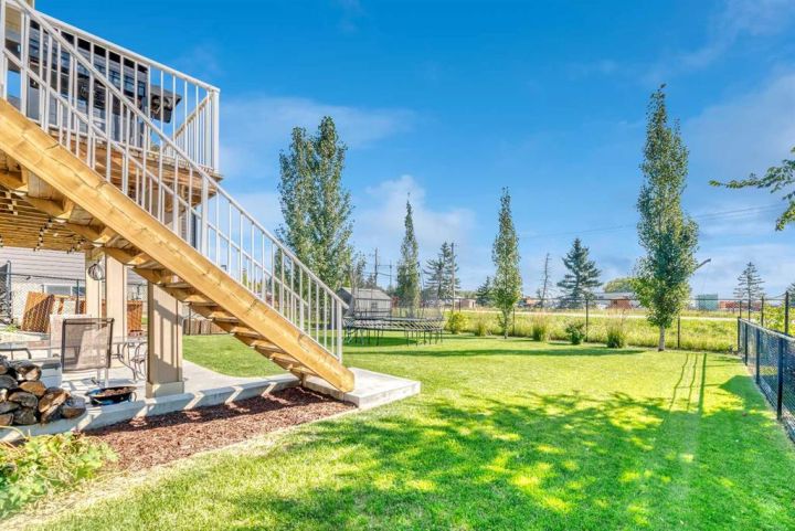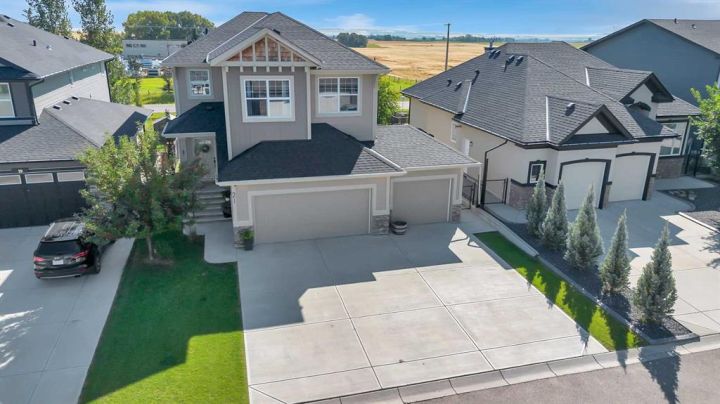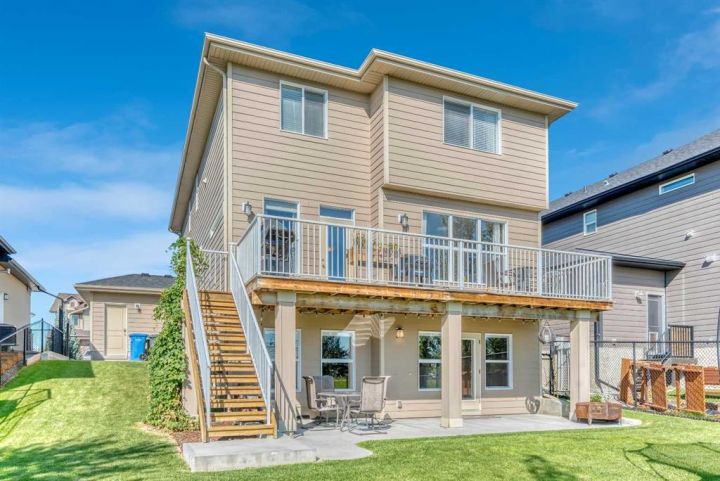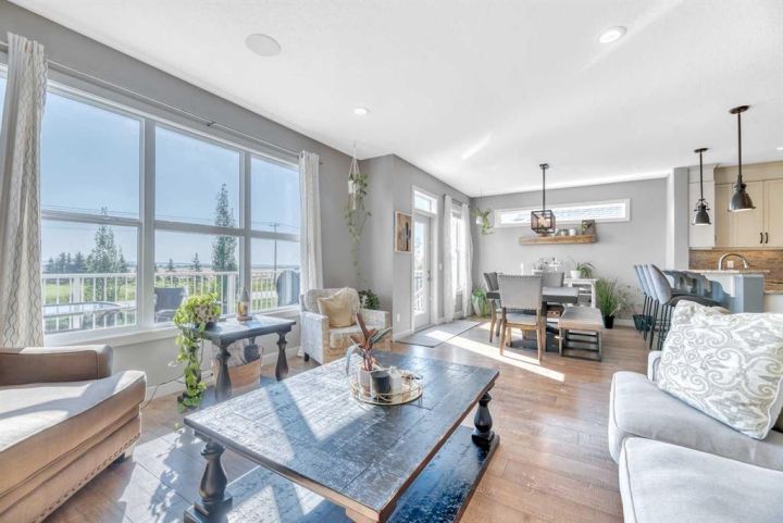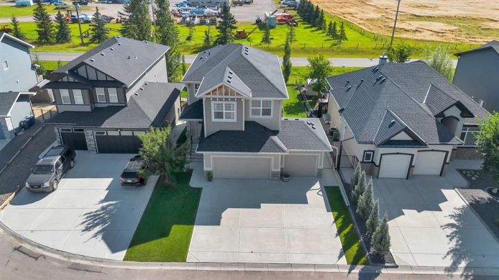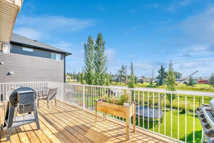 Okotoks - 21 Ranchers Crescent: Discover refined family living in the prestigious community of Air Ranch—Okotoks’ premier estate neighborhood known for its wide-open skies, walking paths, and quiet, family-friendly atmosphere. This impressive two-story walkout sits on a generous, landscaped lot with underground irrigation and a fully fenced backyard. Inside, a bright, open-concept floor plan welcomes you with sun-filled living spaces and durable luxury vinyl plank flooring throughout the main level. At the heart of the home, the stunning kitchen is both stylish and functional, showcasing ceiling-height cabinetry, granite countertops, stainless steel appliances including a gas range, and a walkthrough pantry that connects seamlessly to the mudroom and heated triple garage. The kitchen flows effortlessly into the dining and living areas, making it ideal for both everyday living and entertaining. Just beyond, an elevated deck with a BBQ gas line and stairs to the backyard extends the living space outdoors. Upstairs you will find a spacious family room, and three bedrooms, including a spacious primary retreat with a spa-inspired five-piece ensuite and walk-in closet. A second full bathroom and a laundry room with a gas dryer—helping keep utility costs low—complete this level. The partially developed walkout basement adds flexibility for future expansion, while comfort throughout the home is enhanced by dual-zone climate control, central air conditioning, and built-in speakers. The walkout level features a large concrete patio with power for a hot tub, conduit for an additional gas line, and electrical to the southeast corner of the lot to provide power for a shed. The attached triple garage is heated, wired for sound, and offers EV power. Air Ranch offers a rare balance of estate-style living with small-town charm. Residents enjoy quick access to parks, playgrounds, and scenic walking paths, while being just minutes from Okotoks’ vibrant shopping, dining, and recreation amenities. Families will appreciate proximity to schools, and commuters will value the easy drive into Calgary. A home that blends comfort, style, and functionality—set in one of Okotoks’ most desirable neighborhoods. Welcome to 21 Ranchers Crescent.