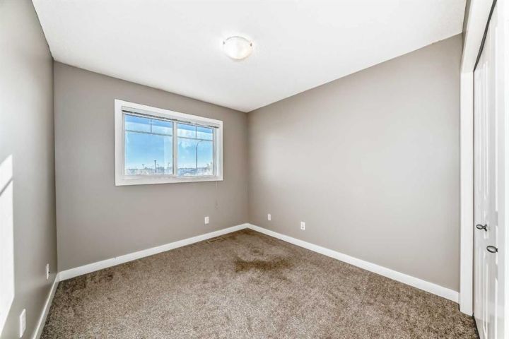 Amazing location — walk to Costco, GoodLife, Home Depot, Winners, schools, restaurants, and scenic walking paths, with easy highway access! This FRESHLY PAINTED this townhouse features NEW FLOORING throughout. The bright, open-concept main floor offers a spacious living room, kitchen with eating bar, dining area, and a convenient 2-piece bath. Step out to the east-facing deck with a gas BBQ hookup, perfect for morning coffee or evening relaxation. Upstairs includes a large primary bedroom with walk-in closet and 4-piece ensuite, plus two additional bedrooms, upper laundry, and a 4-piece main bath. The undeveloped basement has a bathroom rough-in and room to grow. Complete with an oversized single attached garage, driveway parking, and visitor stalls nearby, this home is perfect for first-time buyers or downsizers alike!