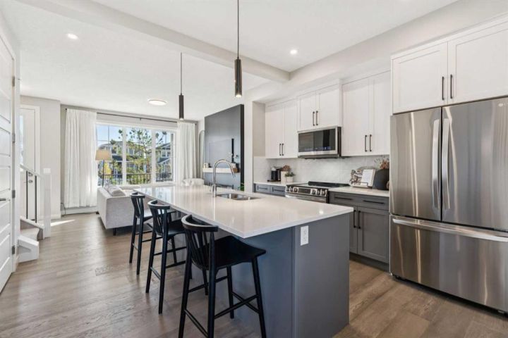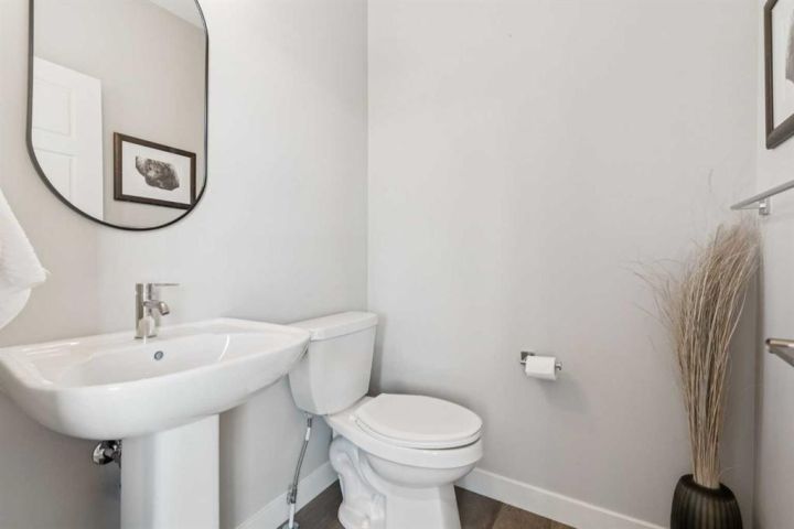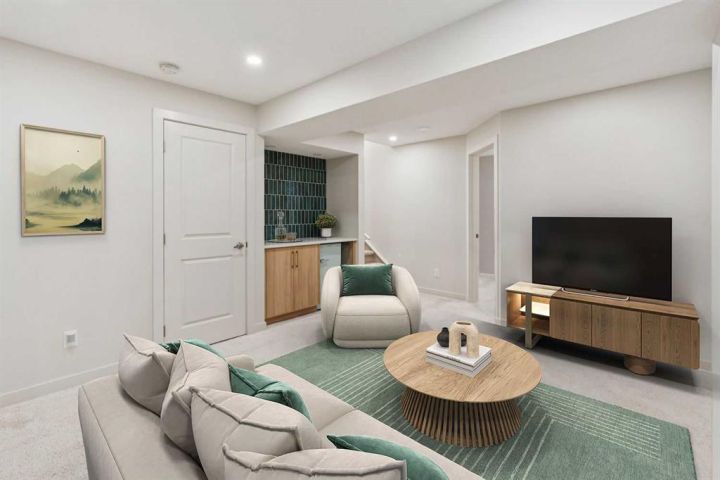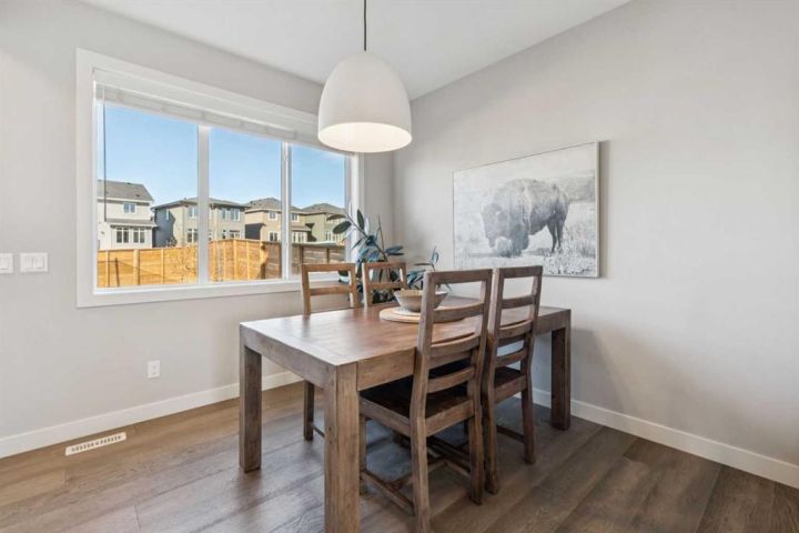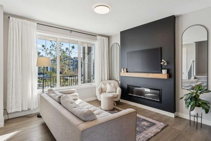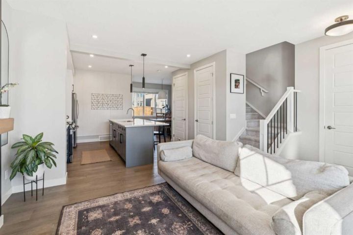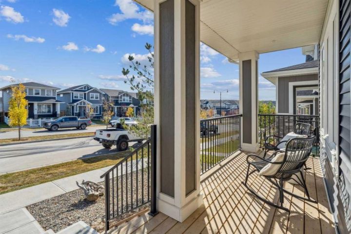 Welcome to this beautifully upgraded detached home in desirable Sunset Ridge, offering 1741 sq. ft. of developed living space. Located just steps from the local school and the future community centre, this property is ideal for families looking to settle into one of Cochrane’s most vibrant communities. The charming east-facing front porch invites you to your new favourite coffee spot. The large, west-facing backyard enjoys plenty of afternoon sun, with neighbours set back for added privacy, and a paved back lane. A two-car parking pad is tucked neatly inside the fenced yard, offering a prime opportunity to create a custom garage, workshop, or studio tailored to your needs. Mountain views await from the site of your future deck. The professionally installed stone patio and upgraded fencing elevate the outdoor space beyond standard builder finishes, creating a polished and private retreat for relaxing or entertaining. A dedicated dog run is perfect for pet owners and even has a private side entrance. Inside this meticulously cared for home, you’ll find a bright, airy layout with stylish upgrades throughout, including a modern electric fireplace in the main living area. The upstairs features comfortable bedrooms with blackout blinds and a spacious primary suite complete with a walk-in closet. The professionally designed and finished basement adds a fourth bedroom with its own walk-in closet, ideal for guests, teens, or extended family. A dry bar in the rec room anchors the space, with designer tile adding a fun feature wall. Ample storage is located throughout the home, and, on the exterior you can access a large storage space beneath the front porch. Additional comforts include central A/C, water softener, and a HEPA air filtration system, ensuring year-round comfort and peace of mind. The kitchen appliances are upgraded, and include a Bosch dishwasher. This home offers exceptional value and is move-in ready! Book your showing today!