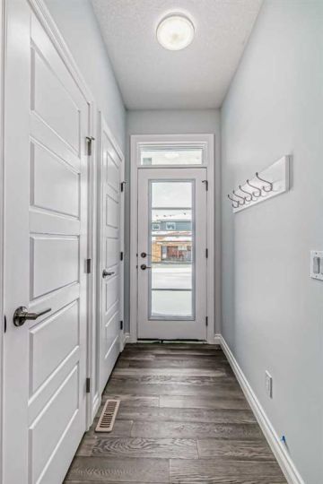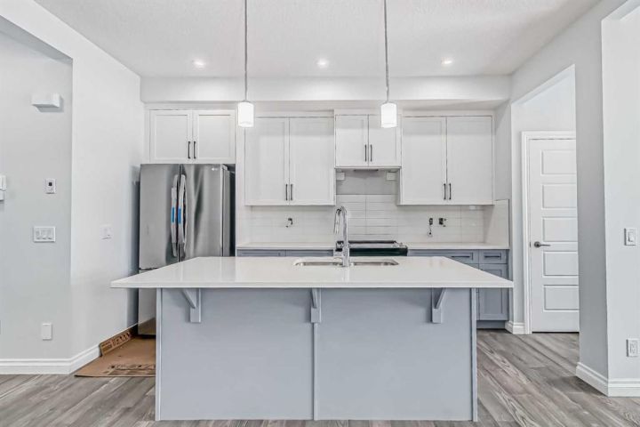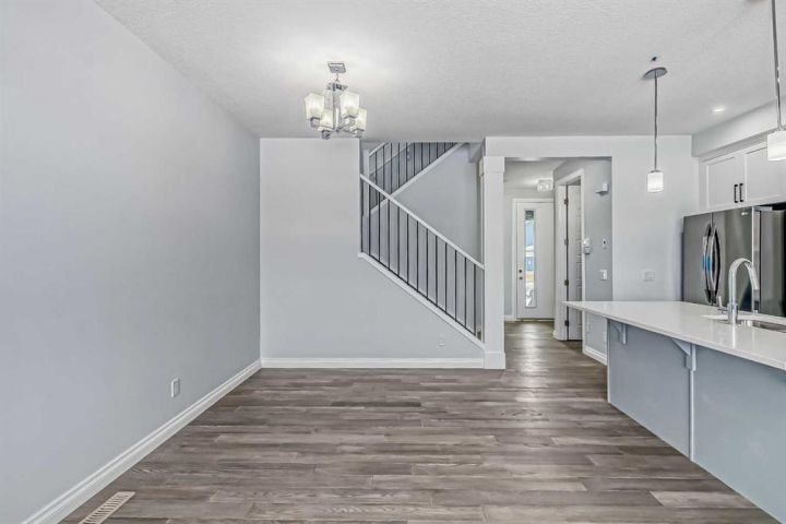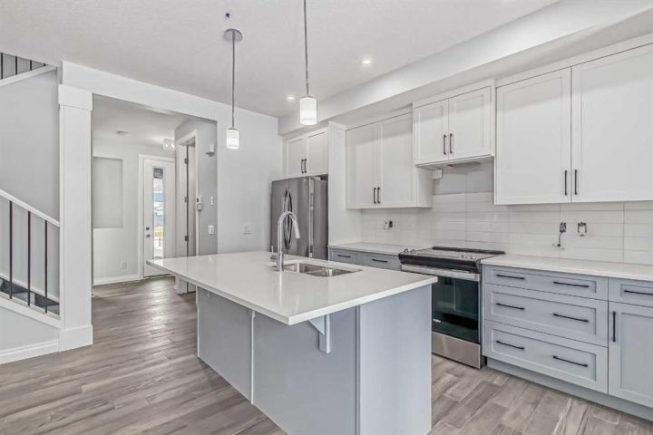 WOW ! A brand new home by Douglas Homes- Master Builder. Located one block from the new park that has been put into Southbow Landing. Thinking you may need a little bit more space ? Why not upgrade to this beautiful attached property- The Canberra ! With a generous almost 1500 worth of square footage, this home is sure to impress. This home provides 3 bedrooms, 2.5 bathrooms, a main floor bedroom or office for a perfect floor plan. The Douglas Homes kitchen comes standard with Quartz countertops on both the main floor kitchen, and the upstairs bathrooms. What an upgrade ! What really sets this home apart is the main floor office, isn't that handy ? As you go upstairs, the large window going up the stairs brings in lots of natural light. It's one of our favourite features of this home. Once upstairs, you will find 3 large bedrooms, and a walk in, full size washer and dryer with room for storage. The upstairs primary bedroom is spacious, and has a walk in closet, and even double sinks in the primary ensuite. This home doesn't even feel like a semi detached property, if you can believe it ! On the way to the basement you will find a side entrance which is perfect for a possible mortgage helper ( with approval from Rocky View County ). This home is ready in about six months and it can be yours this spring, and the best part is you have enough time to choose your palette of colours/finishings. Photos are from prior build & are reflective of fit, finish & included features. Note: Front elevation of home & interior photos are for illustration purposes only. Actual elevation style, interior colours/finishes, & upgrades may be different than shown & the Seller is under no obligation to provide them as such. Directions: Come to the Show Home first located at 115 Southborough Crescent. Show Home hours to view. This home is under construction