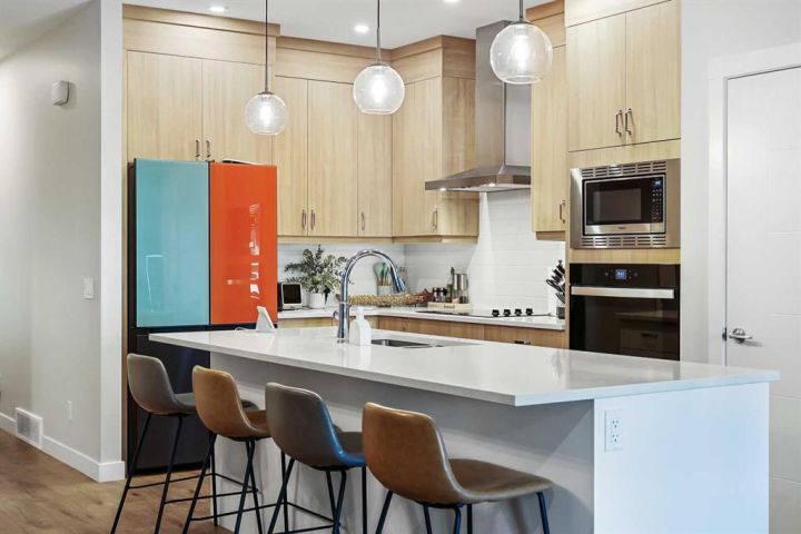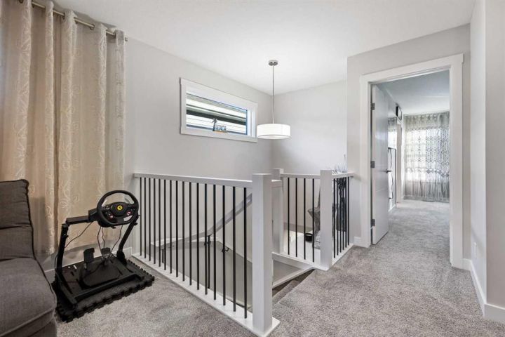 Welcome to this stunning and highly customized Brookfield 2-storey home in the vibrant, amenity-rich community of Seton — where modern design meets timeless comfort. Showcasing nearly 2,000 square feet above grade, this exceptional residence has been thoughtfully upgraded and enhanced with personalized touches that elevate its style and function. From the moment you arrive, the home’s inviting exterior, accented by rich colours, charming front porch, and architectural details, hints at the sophistication that awaits inside. Step into the main living area, where 9-foot ceilings and premium finishes create a sense of openness and warmth. The living room immediately draws your attention with its floor-to-ceiling shiplap feature wall, floating shelves, and a striking marble-inspired fireplace—a perfect blend of modern elegance and cozy character. Flowing seamlessly from the living space, the Chef’s Gourmet kitchen impresses with full-height cabinetry with rise and crown moulding, built-in wall oven and microwave, sleek cooktop with a chimney-style hood fan, and an expansive quartz island with a flush eating bar. The Arctic white tile backsplash and Blanco undermount sink add a refined finishing touch, while upgraded Cartwright lighting fixtures illuminate the space with designer flair. The dining area, brightened by an additional side window, creates the perfect setting for family meals and entertaining alike. Just beyond, a private main floor bedroom with a full three-piece ensuite featuring a glass-enclosed walk-in shower and floor-to-ceiling tile offers versatility for guests, multi-generational living, or a home office. The rear entry door, framed with encased glass, allows sunlight to sweep through the home and connect the indoors to the outdoors effortlessly. Upstairs, discover three additional spacious bedrooms, each enhanced with custom feature walls. The primary suite is a retreat of its own, showcasing a five-piece spa-inspired ensuite with dual undermount sinks, quartz counters, and a walk-in closet. The centralized family room—perfect for movie nights—cleverly separates the primary suite from the secondary bedrooms, adding privacy and balance to the upper floor. A well-appointed laundry room with built-in counter and storage and a full bath complete this level. The lower level has been thoughtfully roughed-in for a future secondary suite (subject to approval and permitting by the city/municipality), featuring 9-foot foundation walls, rough-ins for a second laundry, kitchen plumbing, and full bathroom—a smart investment for future flexibility. Modern efficiency features include triple-glazed windows, an 80-gallon water tank, smart thermostat, Heat Recovery Ventilator, and knockdown ceilings throughout. Step outside to a beautifully finished backyard, complete with a massive covered deck—ideal for entertaining year-round—and an upgraded double detached oversized garage.