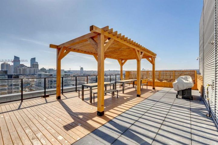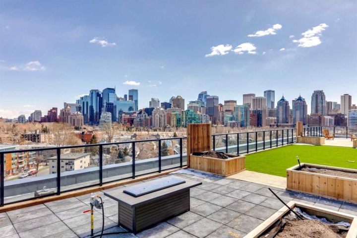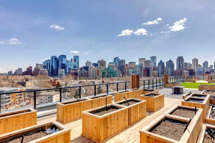 Live in the heart of Kensington — with floor-to-ceiling downtown skyline views. This is luxury urban living steps to Calgary’s best restaurants, coffee shops, boutique fitness, grocery, the C-Train… and the Bow River pathway system. Walk Score 94. Plus: building is AirBnB-permitted — a rare and strong investment opportunity. The Annex by Minto (award-winning Nyhoff architecture) is Kensington’s first LEED Gold V4 mid-rise — sustainably built, concrete construction, pet-friendly, and known for its quiet interiors + low condo fees. “The Gladstone” floorplan offers 561 sq.ft. one bedroom + den, plus an 80 sq.ft. balcony. The chef-inspired kitchen features stainless steel appliances, gas cooktop, and an oversized island with integrated dining — perfect for entertaining. The den is ideal for a home office, studio, or extra storage. A private balcony off the living room includes a gas line. In-suite laundry and a titled, fully secured underground parking stall complete the package. Residents enjoy a spectacular rooftop patio with skyline views, community garden, dog run, BBQs, multiple social seating zones, PLUS bike storage. Whether you’re walking to your favourite spots in Kensington or quickly commuting downtown — this is one of Calgary’s most liveable inner-city locations.Experience the Annex lifestyle and skyline views for yourself — it’s truly one of a kind.