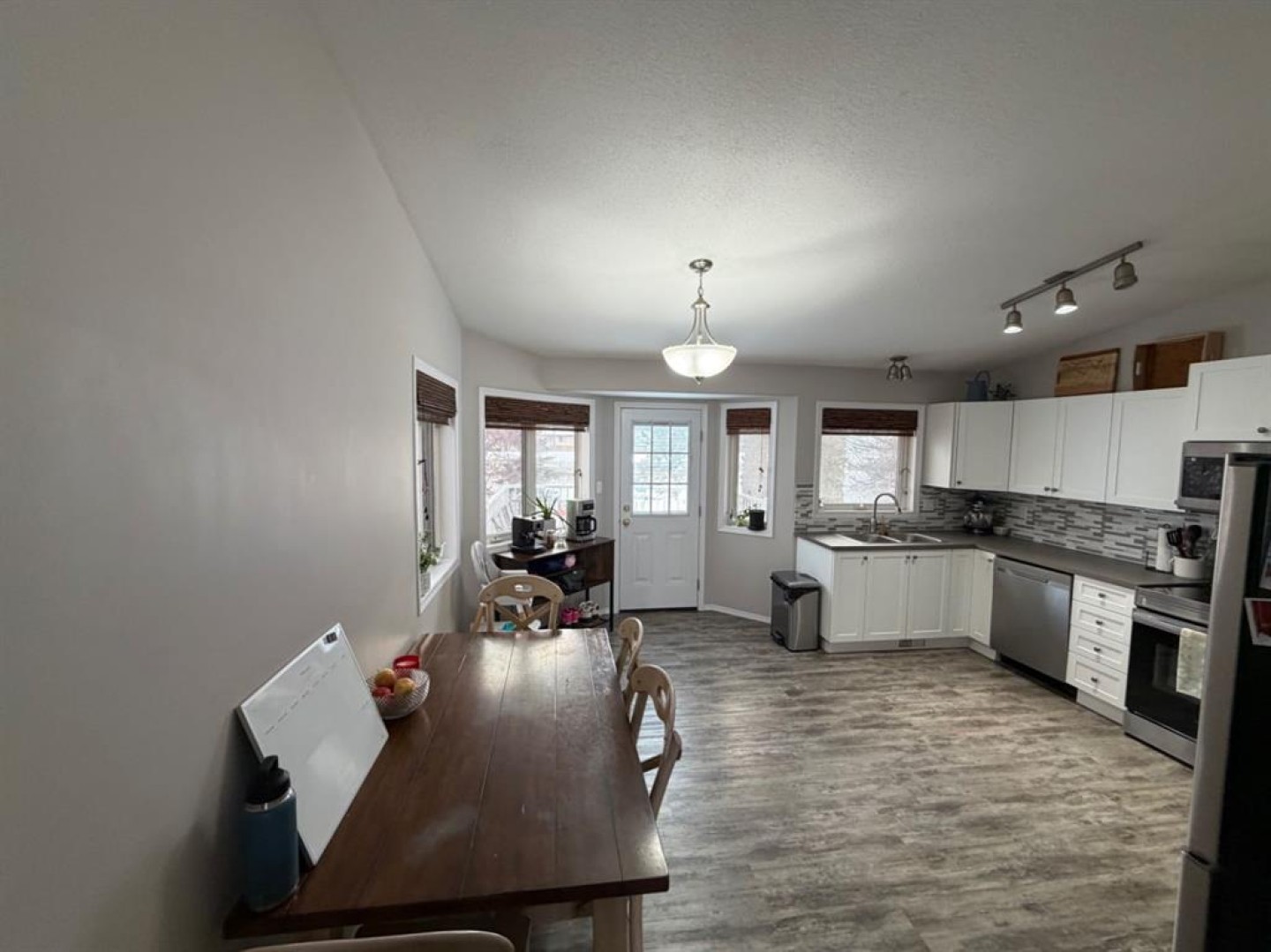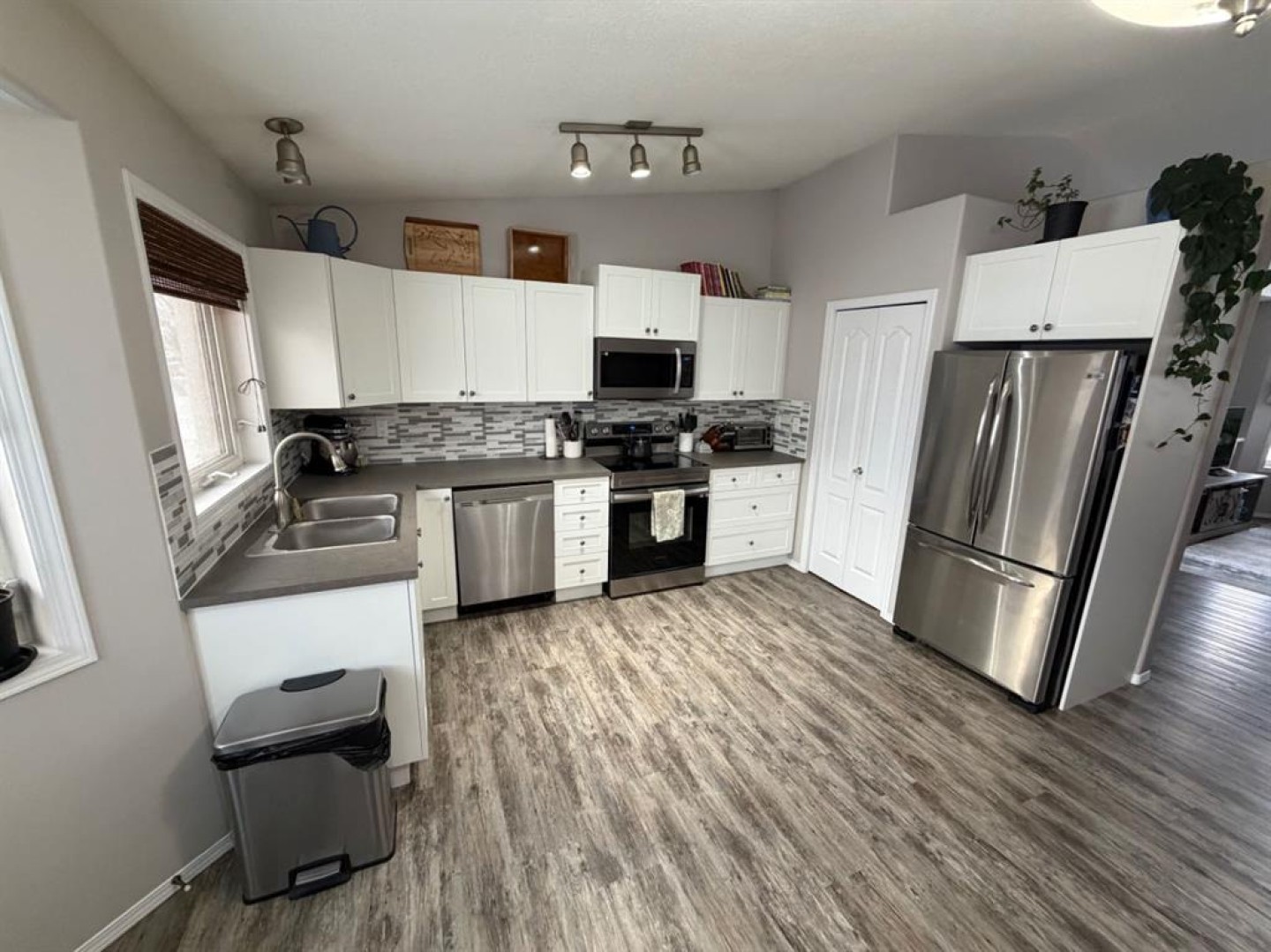 Welcome to this well-maintained 5-bedroom, 3-bathroom home located in the highly desirable Cornerstone subdivision in Grande Prairie’s south end. Designed with both family living and functionality in mind, this property offers space, comfort, and modern finishes throughout. The main floor features durable vinyl plank flooring throughout, complemented by a tile backsplash in the kitchen and a practical, open layout ideal for everyday living and entertaining. All appliances are included, making this a true move-in-ready home. Central air conditioning ensures year-round comfort. With five spacious bedrooms, there’s plenty of room for a growing family, home office space, or guests. The attached double garage provides convenience and extra storage, especially during winter months. Situated in a quiet, family-friendly neighbourhood close to schools, parks, shopping, and south-side amenities, this home offers excellent value in one of Grande Prairie’s most sought-after areas. A solid opportunity for families or buyers looking for space, location, and comfort — all in one package.