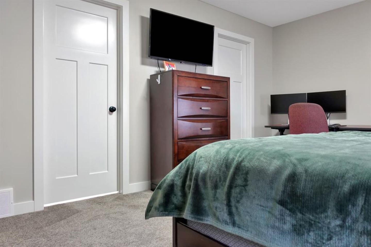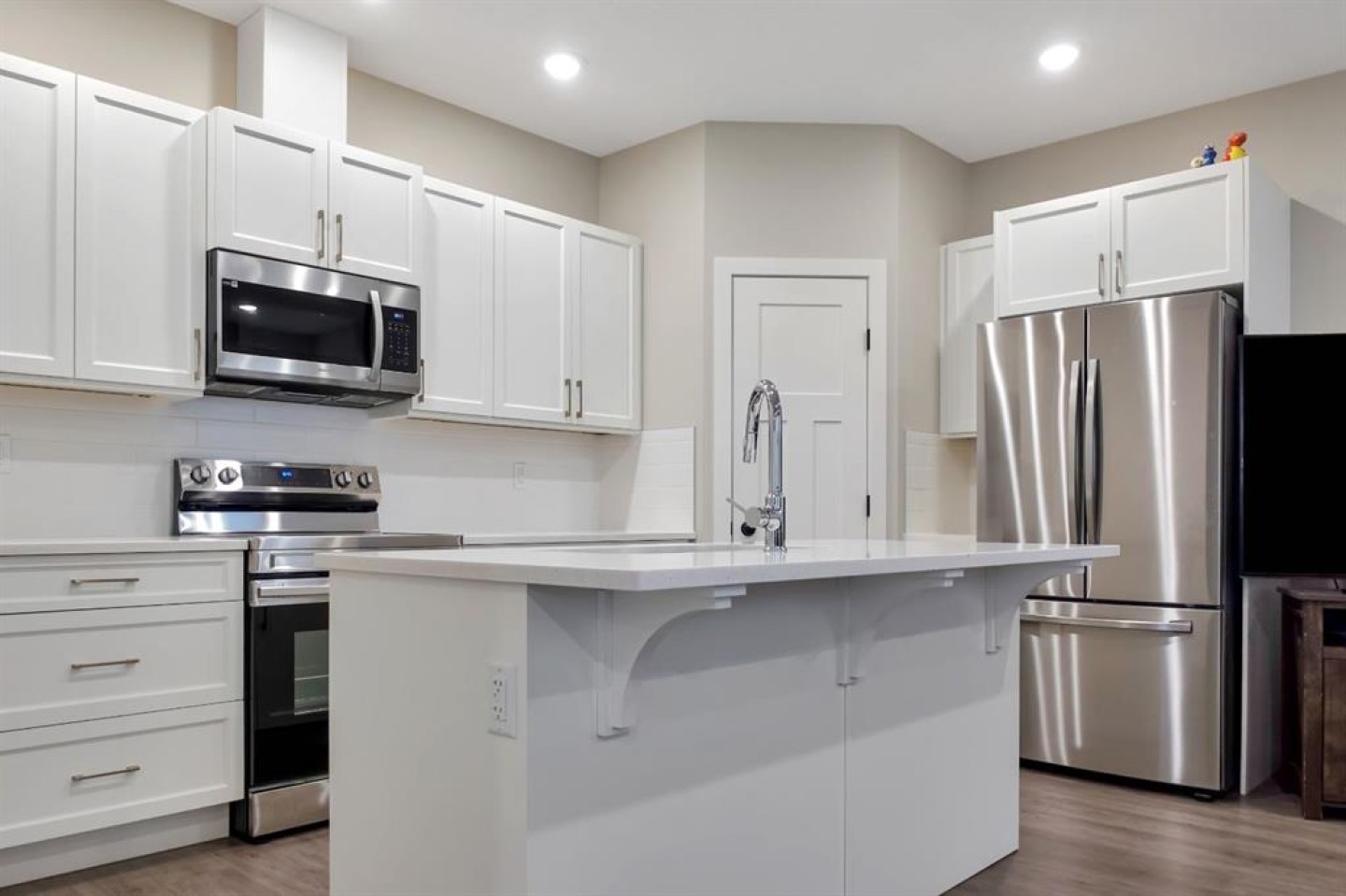 Gorgeous executive 2-storey townhome in Whispering Ridge offers 3 bedrooms and 3 bathrooms, perfect for personal living or investing in your future. The main floor features a welcoming entry with closet and half bath, an open-concept kitchen and living area with crisp white soft-close cabinets, quartz countertops, stainless steel appliances, and a corner pantry, all complemented by durable luxury LVP flooring. Upstairs, the master suite accommodates a king bed, includes a spacious 2-person walk-in closet, and a luxurious ensuite with his-and-her sinks and shower, while two additional bedrooms, a full bathroom, and a convenient laundry room complete the upper level. The unfinished basement is ready for your personal touch, ideal for an extra bedroom or rec room. Additional highlights include a high-efficiency furnace, hot water on demand, central air, matching window coverings, a 12x26 garage, and a welcoming neighborhood, making this home an excellent choice.