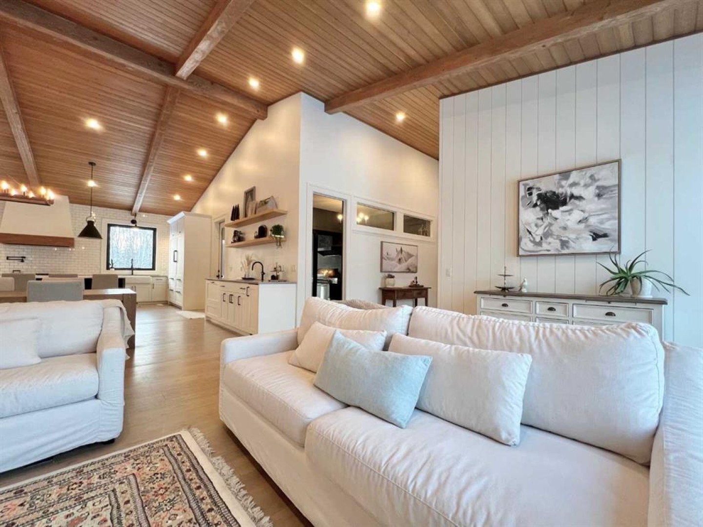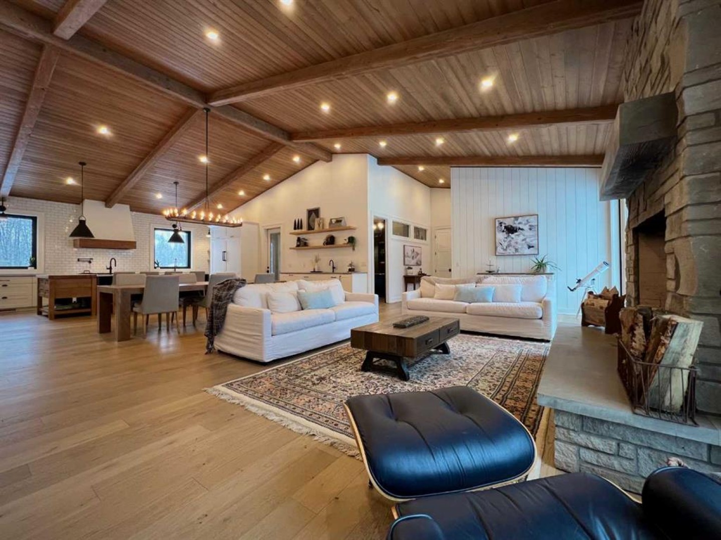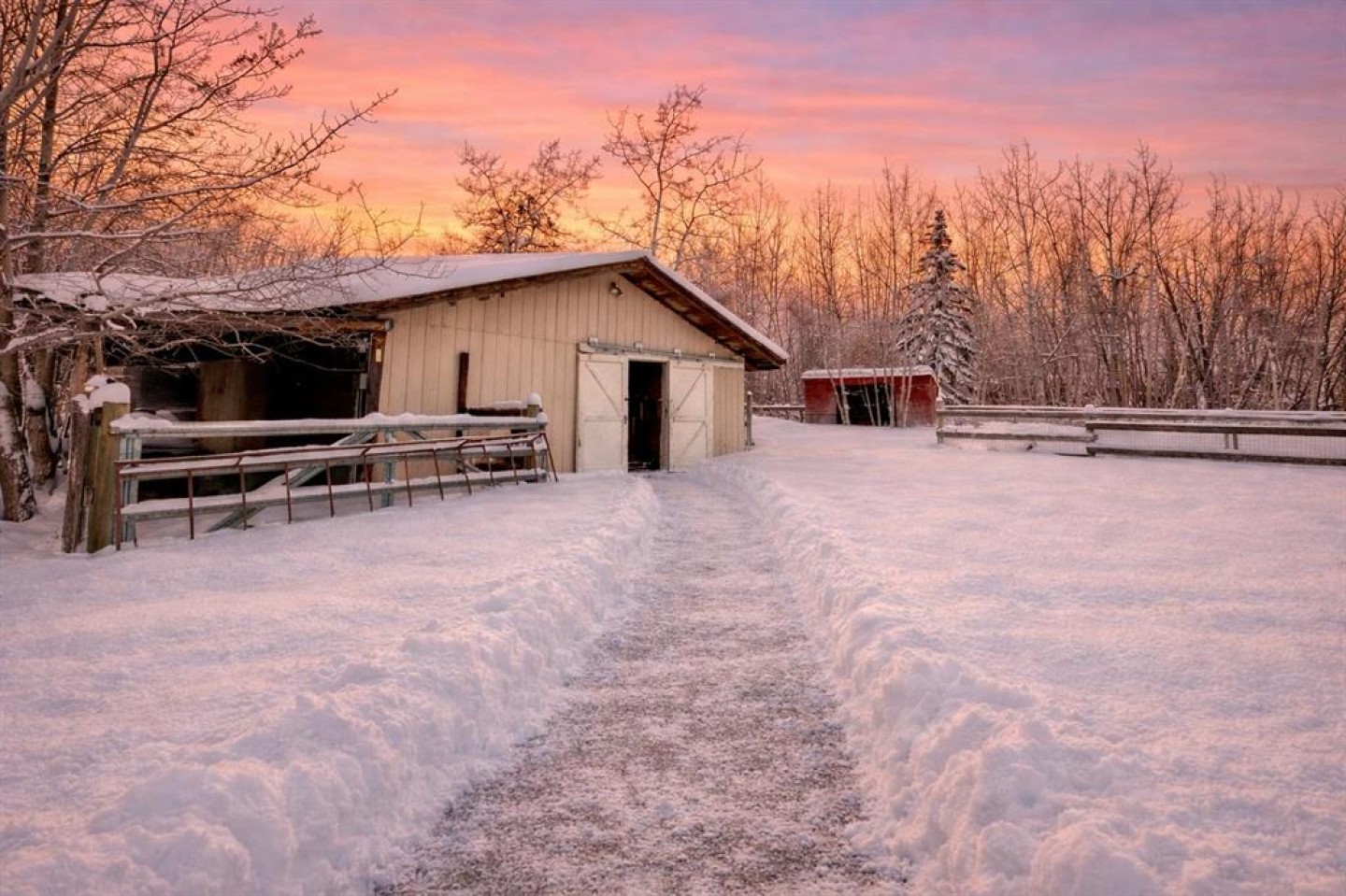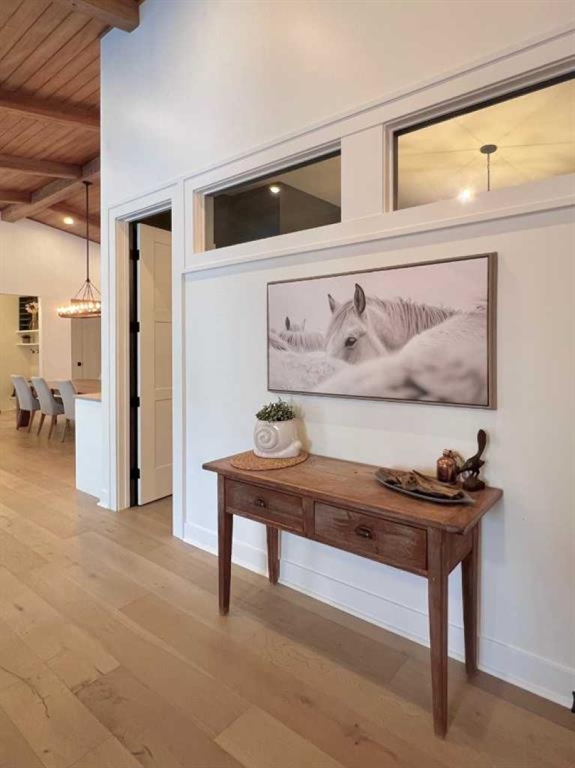 Set on 4.27 fully fenced acres just seconds outside city limits, this property pairs rare proximity with true luxury acreage living. The home underwent a full transformation in 2023 in partnership with luxury builder HomeEdge. Today, this completely rebuilt 4,000+ sq ft residence blends warmth, refinement, and exceptional craftsmanship, rarely found in a mature acreage subdivision. A private driveway leads to the attached garage, framed by striking black triple-pane windows with a lifetime warranty. Clean architectural lines and a thoughtfully contrasted palette feel modern yet grounded in the surrounding landscape. Inside, soaring ceilings with exposed beams stretch above warm hardwood floors. Ten-foot solid-core doors and custom built-ins elevate the main area, with a stone wood-burning fireplace with gas starter. The kitchen is nothing short of remarkable. A 14-foot custom island with integrated butcher block and secondary sink. High-end Wolf appliances, including a gas range with double ovens, pair with a fully integrated Sub-Zero refrigerator concealed within custom cabinetry. Three dishwashers, two cleverly hidden, ensure effortless hosting. Dovetail joinery, pull-out shelving, hidden spice racks, appliance garages, and custom organizers - intention in every detail. A curated bar area extends the entertaining experience, complete with a built-in ice maker, drawer refrigerator, and sink, thoughtfully positioned without disrupting the kitchen’s flow. The enclosed three-season room adds versatile living space with dual gas heaters, a built-in BBQ with exhaust, and a powered screen system. Nearby, a private office offers quiet productivity with direct outdoor access. The primary retreat feels both expansive and intimate, with patio doors and powered blinds opening to the backyard deck, already wired for a future hot tub. The spa ensuite features a steam shower with seating and dual heads, heated floors, automatic blinds, a private water closet, and a freestanding tub positioned for prairie sunset views. The custom walk-in closet includes built-ins throughout and a chute to the laundry. Upstairs, one bedroom functions as a private suite with its own Juliette balcony, ensuite, and laundry hookups. Two additional bedrooms share a beautifully finished bathroom with double sinks and tiled soaker tub. Heated floors extend through every bathroom and into the laundry room. The bright walkout lower level offers a separate gathering space with patio doors to the yard, a striking wet bar with ceiling-height tile, built-in ice maker, and bar fridge space. With a gas fireplace, additional bedroom, and tiled 3-piece bath. Soak in the luxury with; an RO system, softener, hot water on demand, air conditioning, and a finished storage room. Beyond the home, a 36’ x 48’ heated shop (2018) features radiant heat, 8’ and 14’ overhead doors, drain and a mezzanine. A 25’ x 43’ fully serviced barn offers five stalls and a tack area, with power and heat.