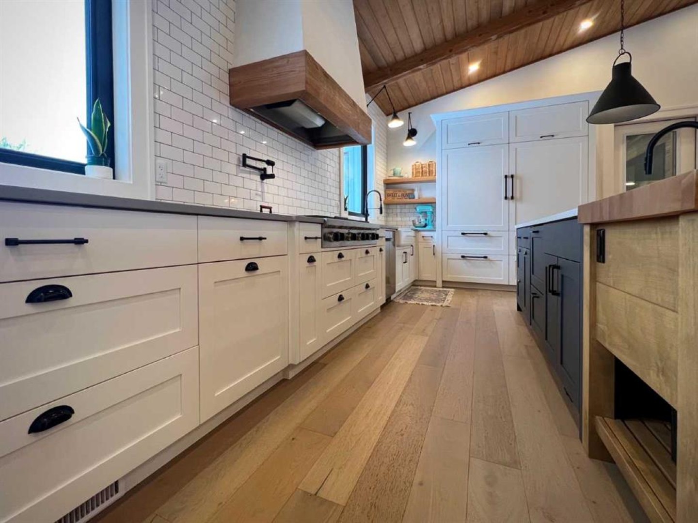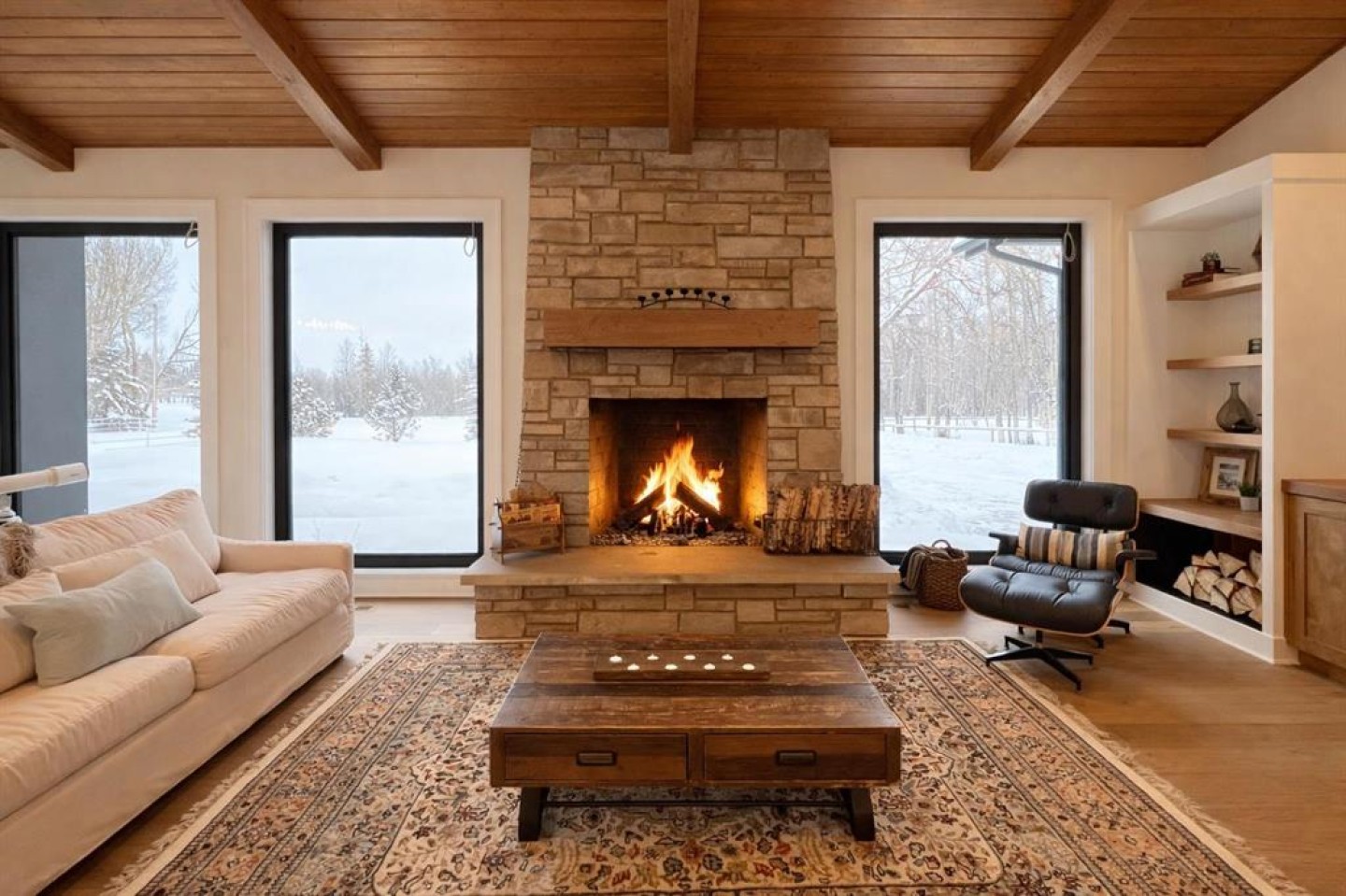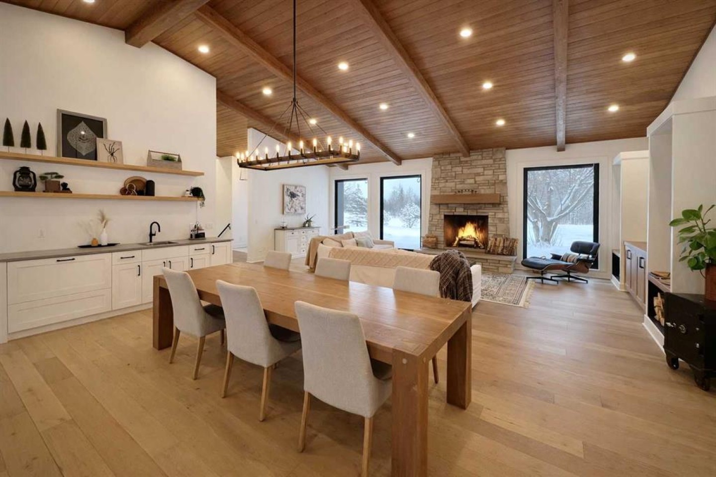 Set on 4.27 fully fenced acres just seconds outside city limits, this property pairs rare proximity with true luxury acreage living. The home underwent a full transformation in 2023 in partnership with luxury builder HomeEdge. Today, this completely rebuilt 4,000+ sq ft residence blends warmth, refinement, and exceptional craftsmanship, rarely found in a mature acreage subdivision. A private driveway leads to the attached garage, framed by striking black triple-pane windows with a lifetime warranty. Clean architectural lines and a thoughtfully contrasted palette feel modern yet grounded in the surrounding landscape. Inside, soaring ceilings with exposed beams stretch above warm hardwood floors. Ten-foot solid-core doors and custom built-ins elevate the main area, with a stone wood-burning fireplace with gas starter. The kitchen is nothing short of remarkable. A 14-foot custom island with integrated butcher block and secondary sink. High-end Wolf appliances, including a gas range with double ovens, pair with a fully integrated Sub-Zero refrigerator concealed within custom cabinetry. Three dishwashers, two cleverly hidden, ensure effortless hosting. Dovetail joinery, pull-out shelving, hidden spice racks, appliance garages, and custom organizers - intention in every detail. A curated bar area extends the entertaining experience, complete with a built-in ice maker, drawer refrigerator, and sink, thoughtfully positioned without disrupting the kitchen’s flow. The enclosed three-season room adds versatile living space with dual gas heaters, a built-in BBQ with exhaust, and a powered screen system. Nearby, a private office offers quiet productivity with direct outdoor access. The primary retreat feels both expansive and intimate, with patio doors and powered blinds opening to the backyard deck, already wired for a future hot tub. The spa ensuite features a steam shower with seating and dual heads, heated floors, automatic blinds, a private water closet, and a freestanding tub positioned for prairie sunset views. The custom walk-in closet includes built-ins throughout and a chute to the laundry. Upstairs, one bedroom functions as a private suite with its own Juliette balcony, ensuite, and laundry hookups. Two additional bedrooms share a beautifully finished bathroom with double sinks and tiled soaker tub. Heated floors extend through every bathroom and into the laundry room. The bright walkout lower level offers a separate gathering space with patio doors to the yard, a striking wet bar with ceiling-height tile, built-in ice maker, and bar fridge space. With a gas fireplace, additional bedroom, and tiled 3-piece bath. Soak in the luxury with; an RO system, softener, hot water on demand, air conditioning, and a finished storage room. Beyond the home, a 36’ x 48’ heated shop (2018) features radiant heat, 8’ and 14’ overhead doors, drain and a mezzanine. A 25’ x 43’ fully serviced barn offers five stalls and a tack area, with power and heat.