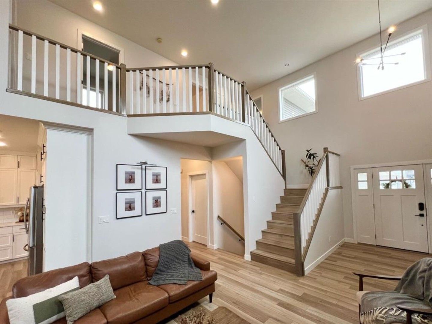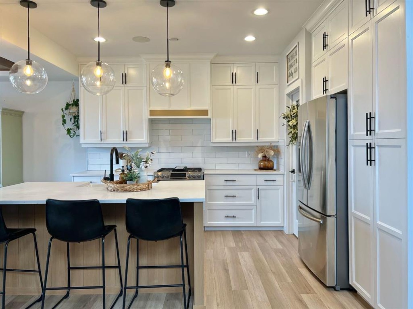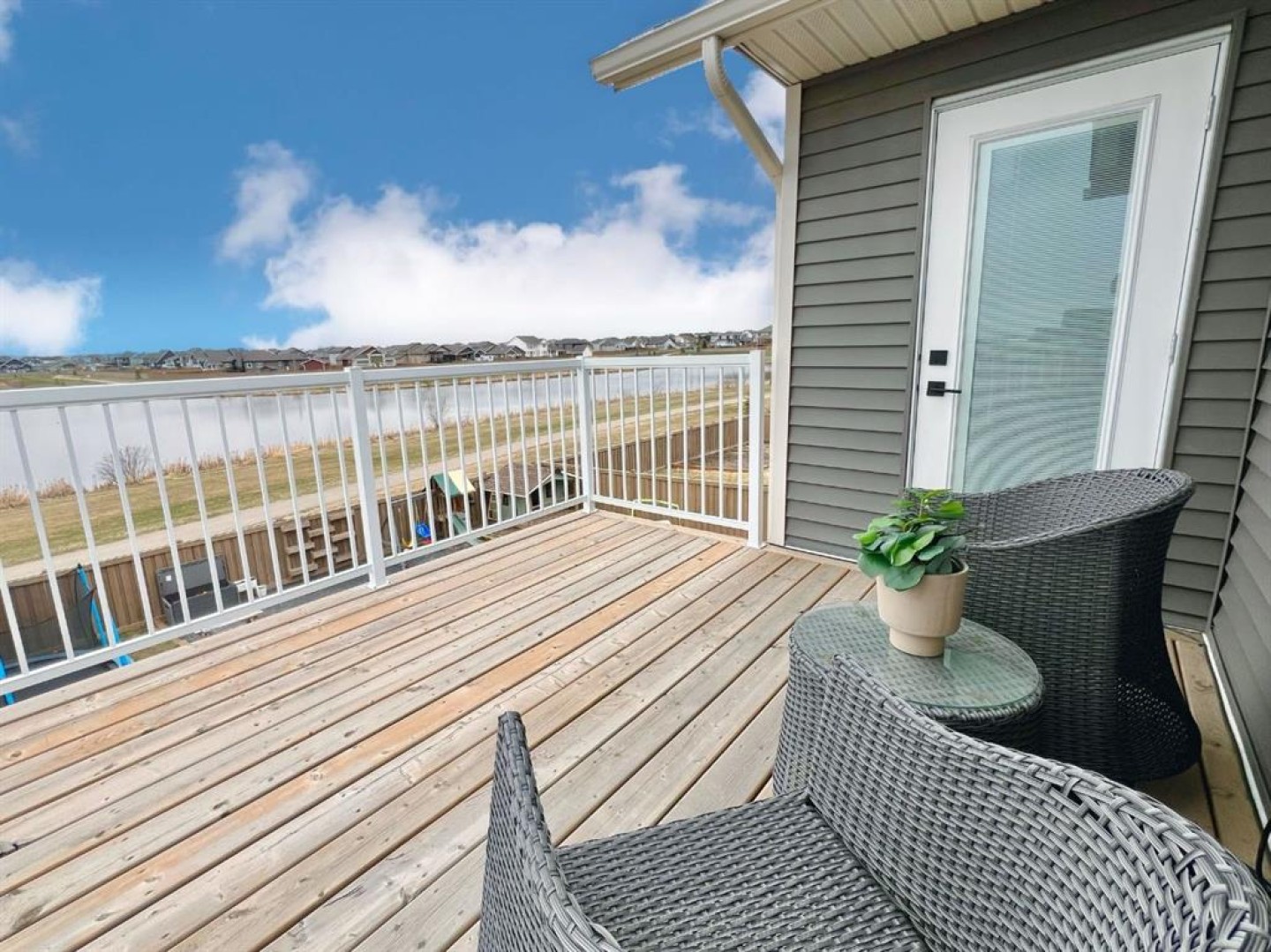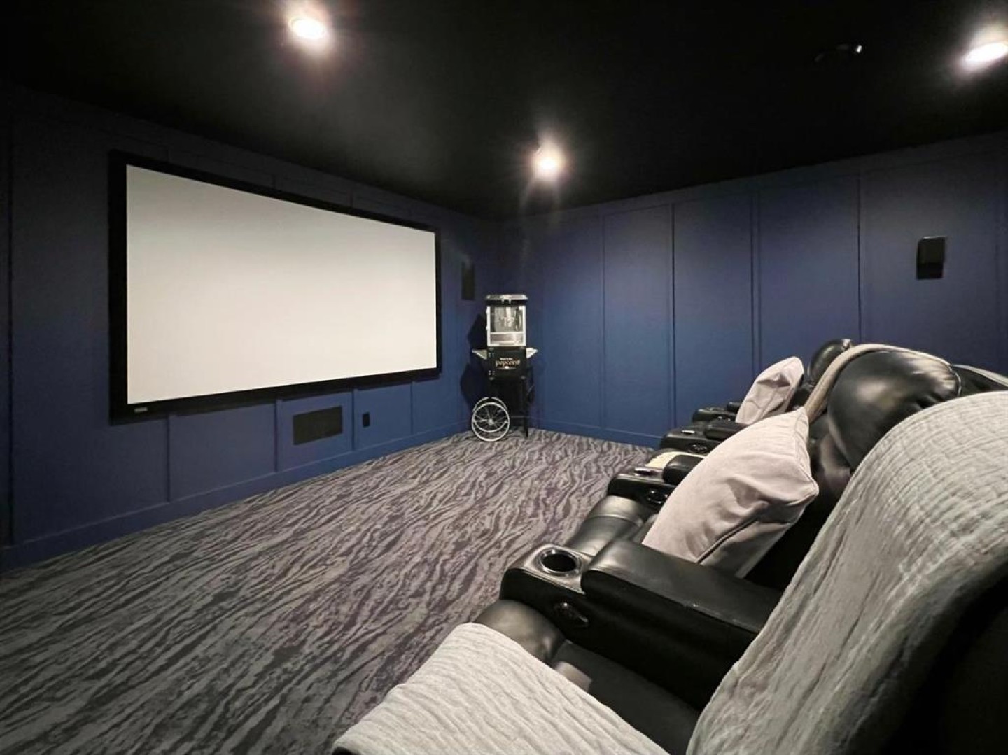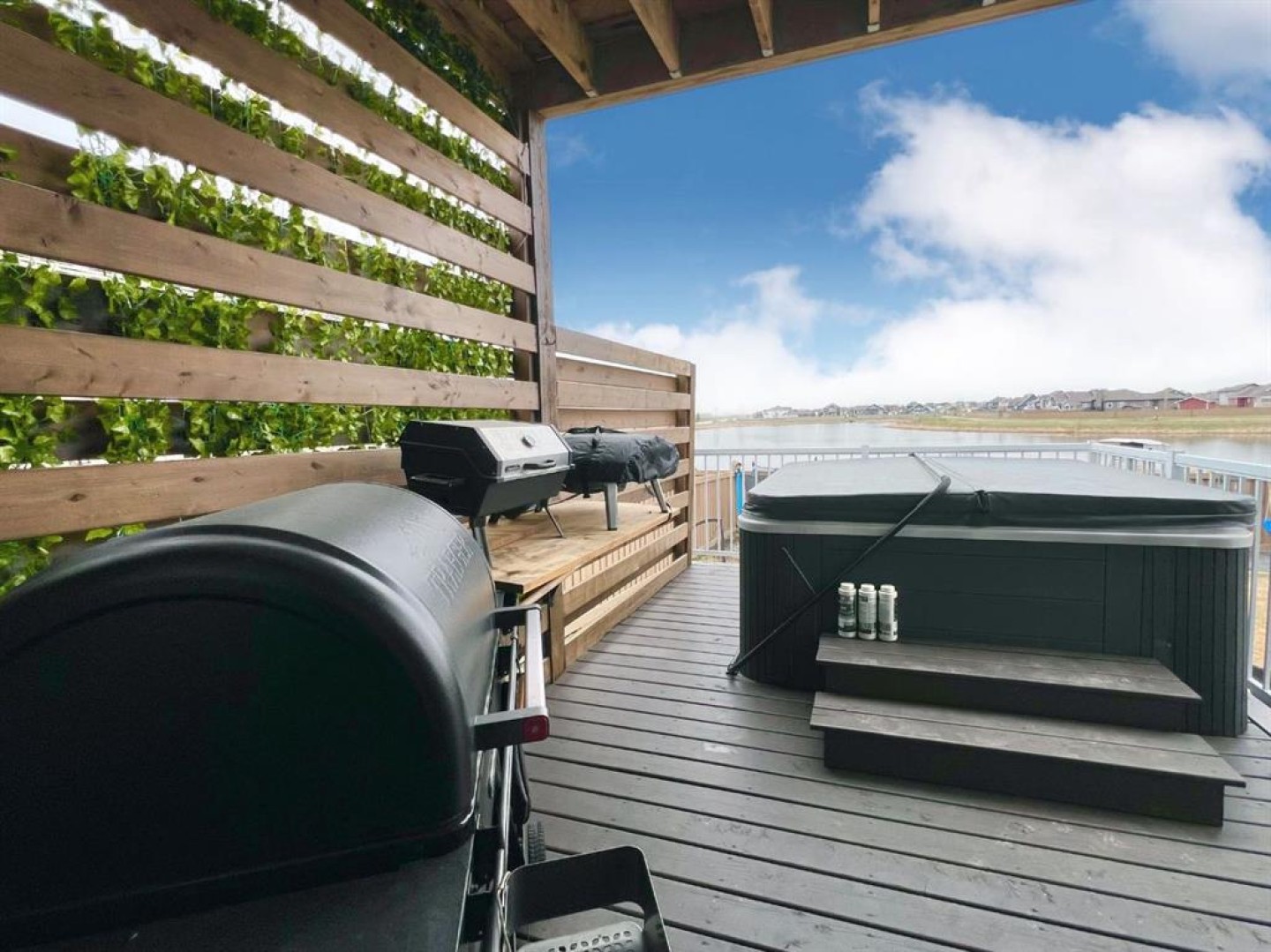 Welcome to Whispering Ridge… where luxury meets lifestyle on the pond. This stunning five-bedroom home with a dedicated office, gym, and fully equipped theatre room was designed to impress at every turn. Backing directly onto the water, the views create a peaceful backdrop you’ll enjoy year-round. Step inside to a soaring entryway that immediately sets the tone, anchored by a dramatic floor-to-ceiling fireplace. Engineered hardwood flooring flows throughout the main living spaces, complemented by quartz countertops, a gas range, and a beautifully moody butler’s pantry that adds both function and flair. Built-in speakers carry your favorite playlists seamlessly throughout the home. The primary suite is big, beautiful, and thoughtfully designed… complete with a charming Juliet balcony overlooking the pond. The spa-inspired ensuite features floor-to-ceiling tile, dual showerheads, a bench, double vanity, and a dedicated makeup station. Two additional bedrooms are generously sized, and convenient main-floor laundry adds everyday ease. Downstairs, the theatre room is ready for movie night with all equipment included, plus a stylish wet bar that makes entertaining effortless. Outside, the lifestyle continues. Enjoy a private putting green, a powered shed, RV parking, and a heated garage. With central air conditioning included, comfort is covered in every season. This is more than a home… it’s a full experience in one of Whispering Ridge’s most desirable pond-side locations.